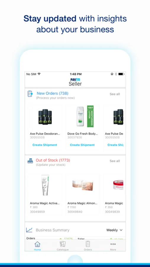Payments: Paytm Seller App offers a rapid payment detail of every transaction and sends alerts of new payment in real time. Easily view date-wise & order-wise payment and search for payment for a particular order id & item id.