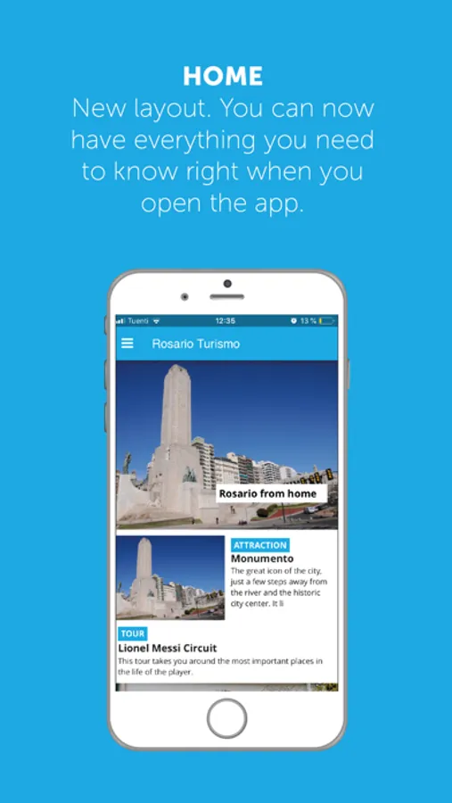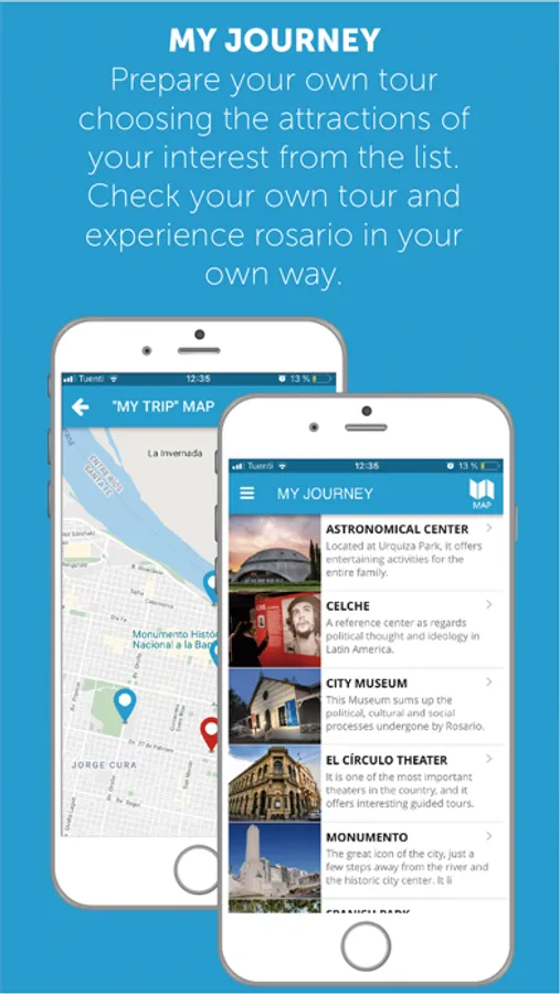 The official app of Rosario offers a new way to discover the city. Theme tours, interactive maps, unique audiovisual content, information about all the attractions and everything you need to know to enjoy your stay in Rosario or plan your next trip to the city.