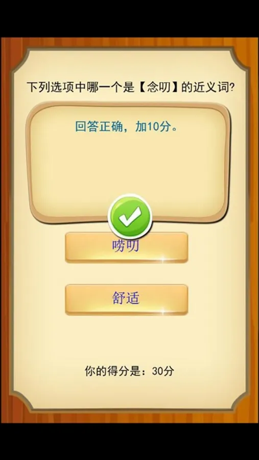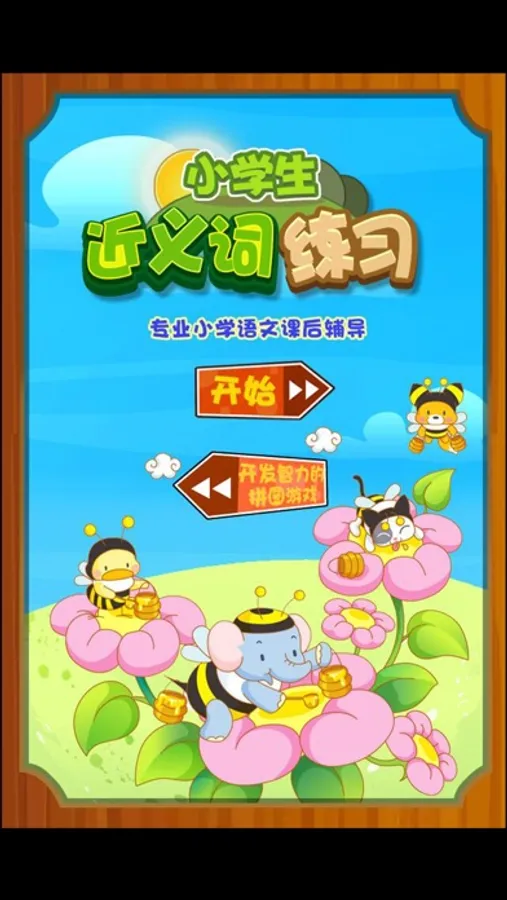 在画面上,《小学生近义词练习》沿用本系列应用一贯的Q版小清新画风,主界面简洁明亮,色彩丰富,十分可爱。