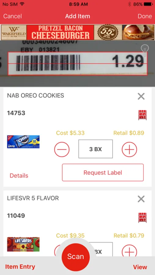 • Add items by scanning UPC’s or shelf labels via a Bluetooth scanner