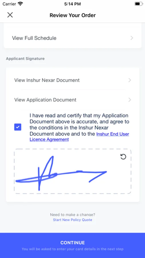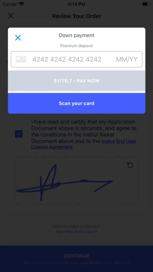 2. Say goodbye to paperwork - simply sign and pay for the policy via the app