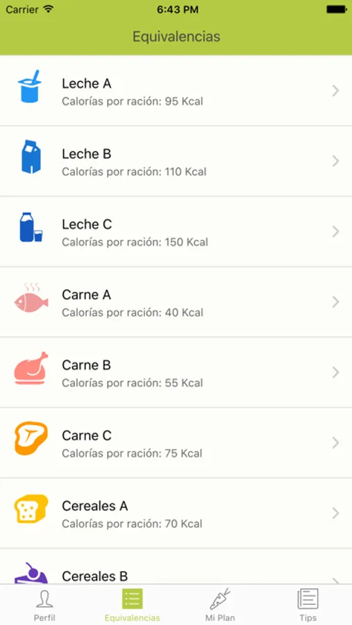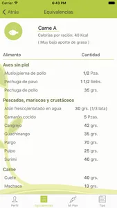 Cuenta con un catálogo de equivalencias para ayudarte a conocer las cantidades energéticas y tamaños de las porciones de cientos de alimentos.