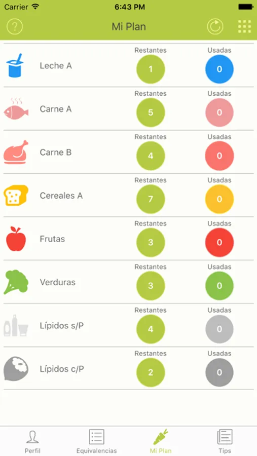 Te ayudará a saber el número de raciones que tienes que consumir durante el día, de cada tipo de alimento. También podrás llevar la cuenta de las raciones que has consumido durante el día.