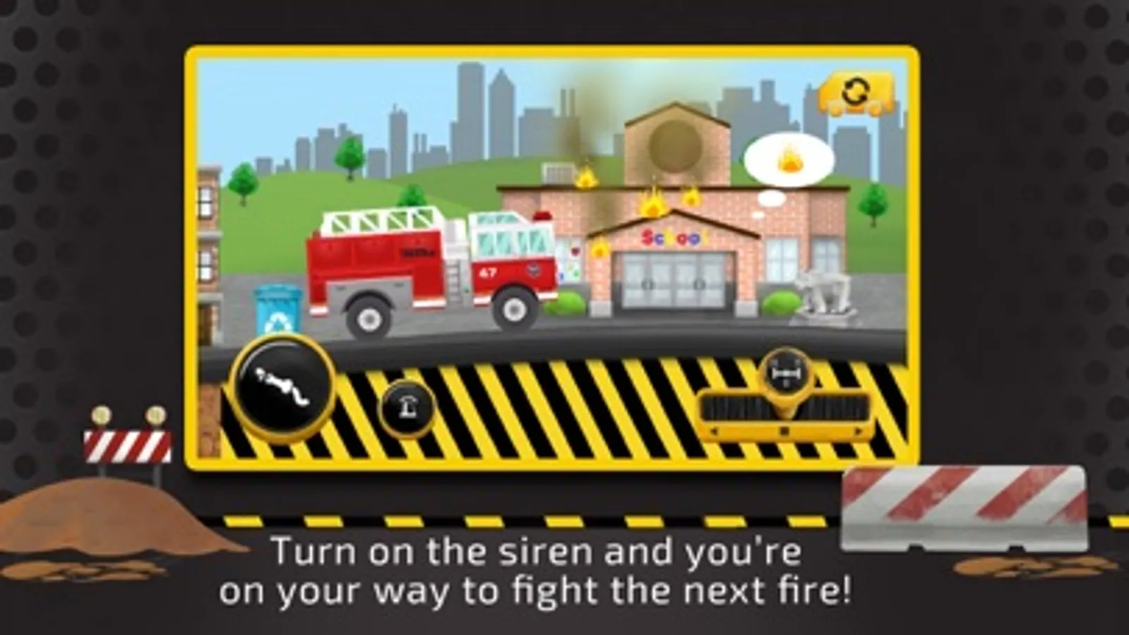• Fire Truck—Fight fires, blast the powerful water hose, and run the siren!