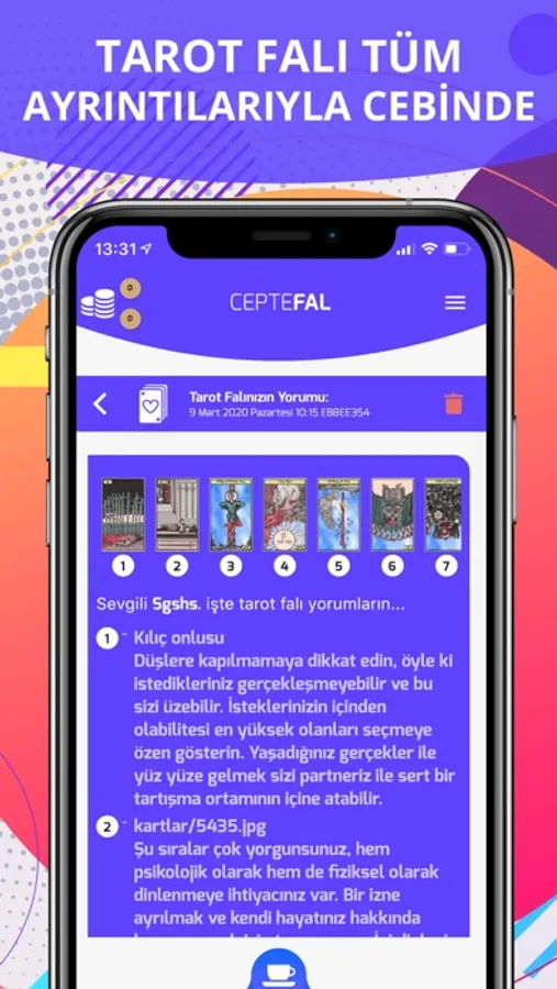 CepteFal ile saatlerce beklemenize gerek kalmadan sorularınıza cevap bulacak, fallarınızı uzun uzun yorumlatacaksınız.