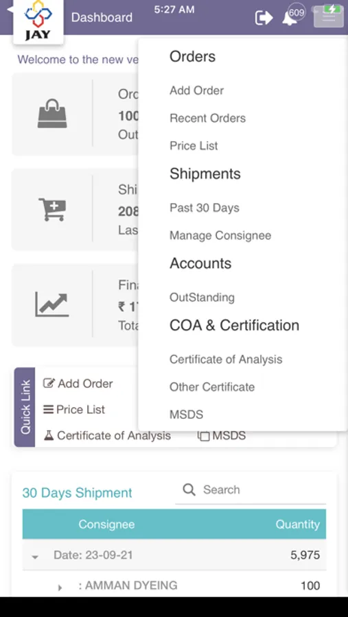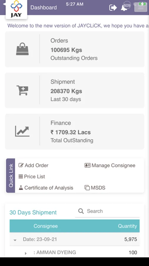 CLICK. JAY has introduced this app to give direct access to its dealers/customer for order