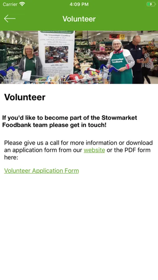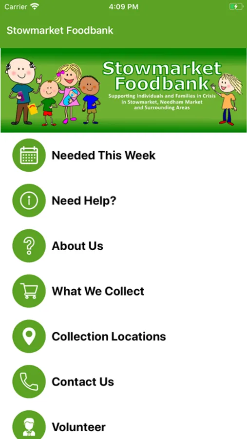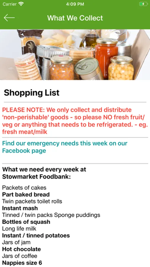 App for Stowmarket Foodbank, helping families with emergency food parcels, find out about what we do and what we need this week.