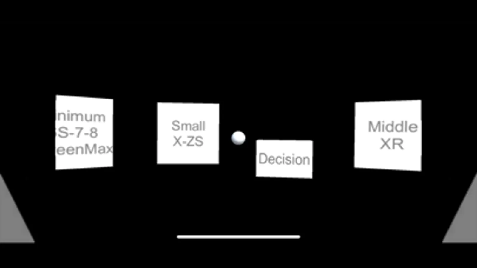 2: Next, rotate your body to the left on the spot to overlap the [Screen size] menu on the left side of the screen and the “sphere cursor at the center of the screen” and tap the triangle mark at the lower right of the screen. (It is referred to as "Select" below)