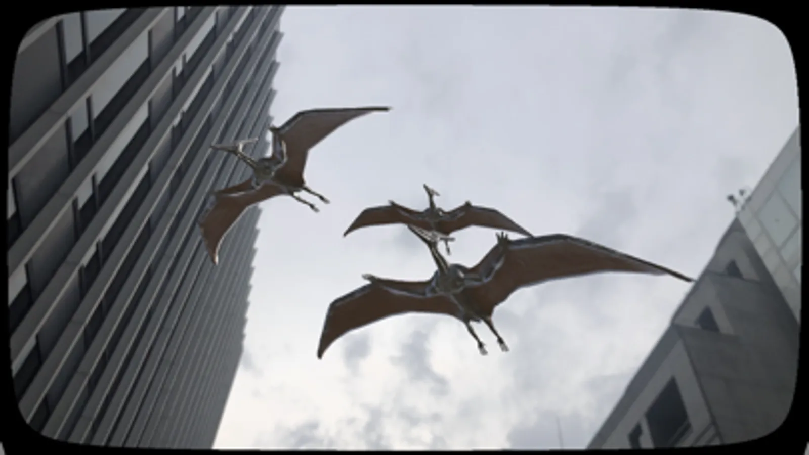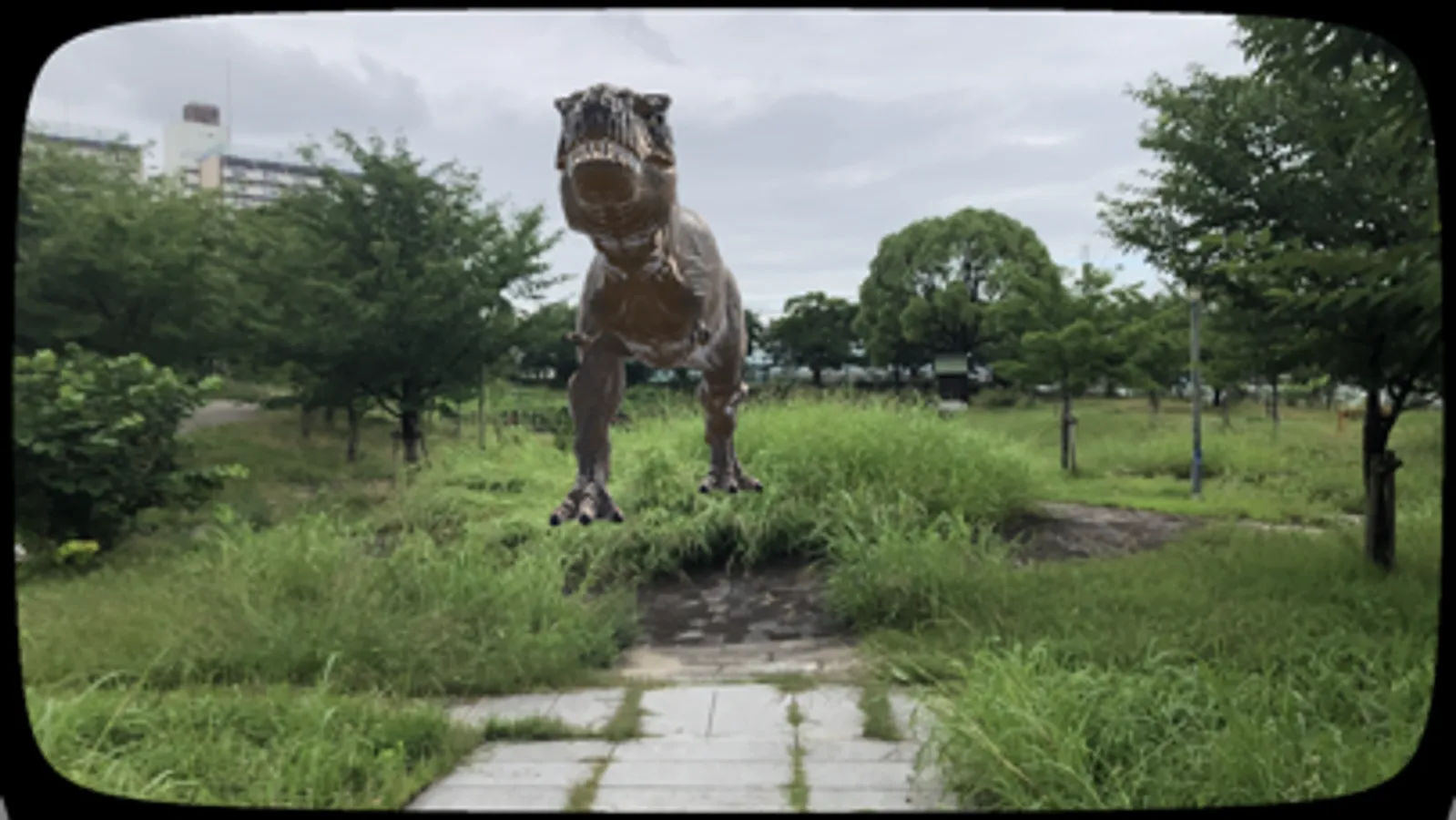 [VR] Virtual reality mode, 3D images of dinosaur and background are displayed