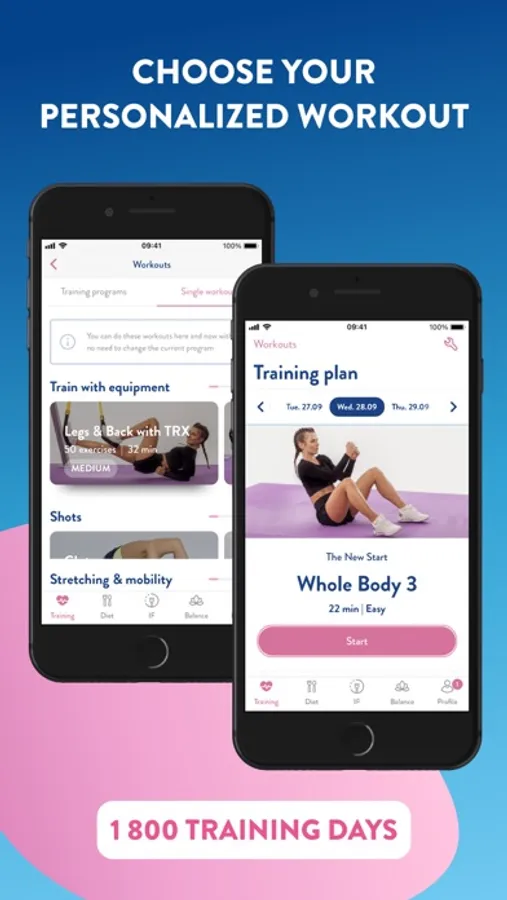 We have our own individual tastes, nutrition habits, physical abilities, and workout experience. That’s why we offer you not only one but 4 easy diets (including a vegetarian diet) and more than 90 fitness workout plans.