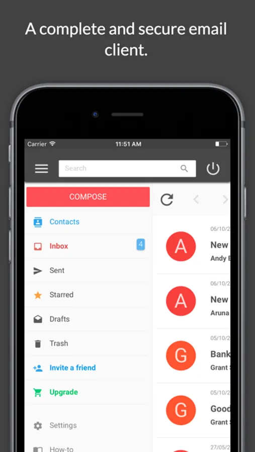 You can attach to your email documents, images, audio and video; They will be automatically encrypted together with the main message.