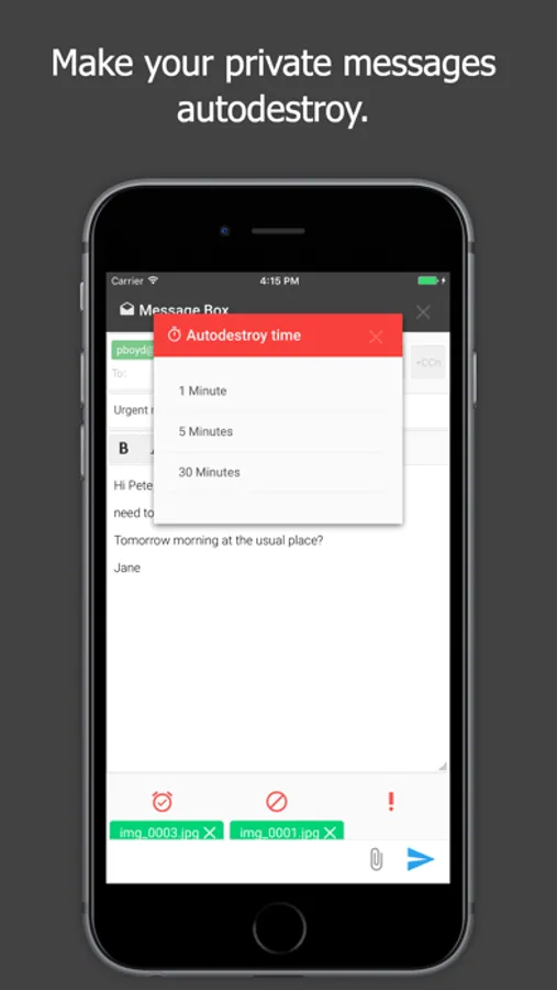 And with the same ease you can set a timer for the self-destruction of your message: one click and your email will transform in a real "time bomb", disappearing from your mailbox and from the recipient one to the time limit that you have established.