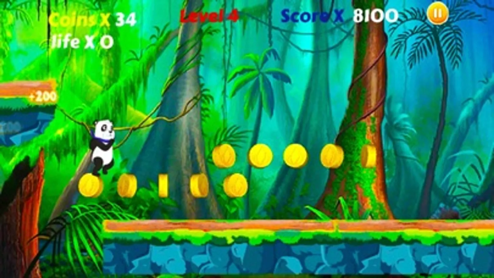 Run, run and do not stop. Make your way in the jungle run over the obstacles, have fun,make panda jump and do not fall. Pop all the gold coins you can to earn as many gold stars as you can for each level.