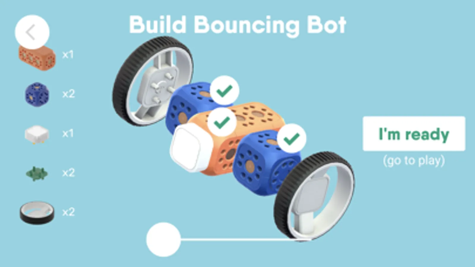 Prototype, design and build your robot with our color-coded building blocks in just a few minutes and use our app to bring the robot to life! To start off, we provide you with 19 interactive tutorials. A truly hands-on experience for children, teachers and parents that transforms learning about technology and STEAM into a fun game.