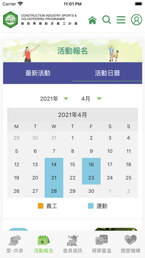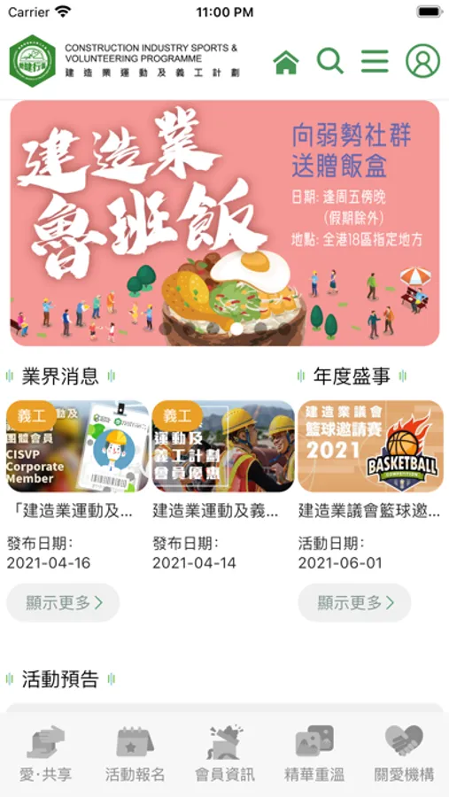 建造業議會(CIC)於2016年9月成立建造業運動及義工計劃(CISVP),旨在在建造業從業員當中提倡健康的生活方式和關懷文化。