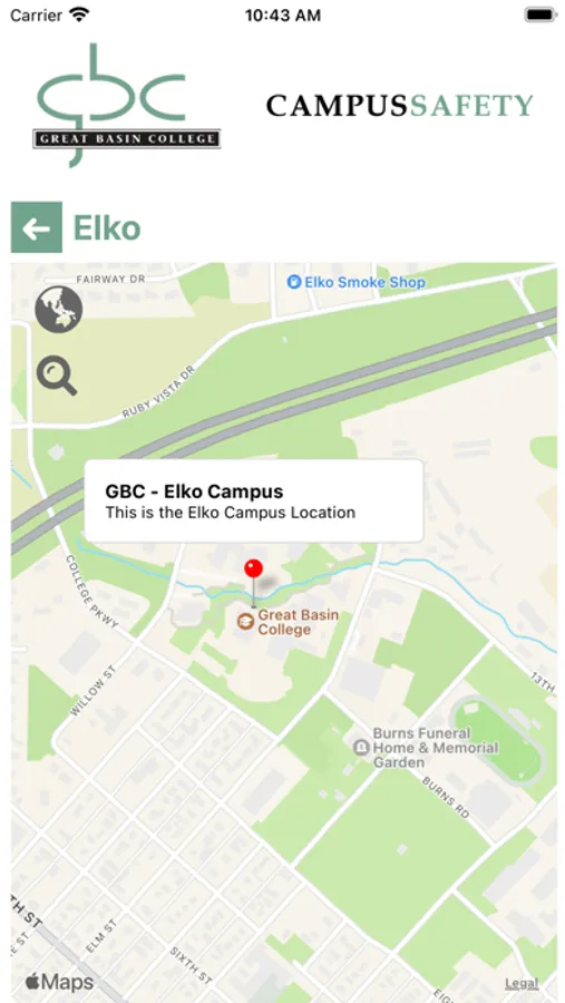 Campus Safety is an essential tool to enhance your safety at Great Basin College. The app will send you important safety alerts and provide instant access to campus safety resources. Campus Safety is the official mobile safety app of the Great Basin College.
