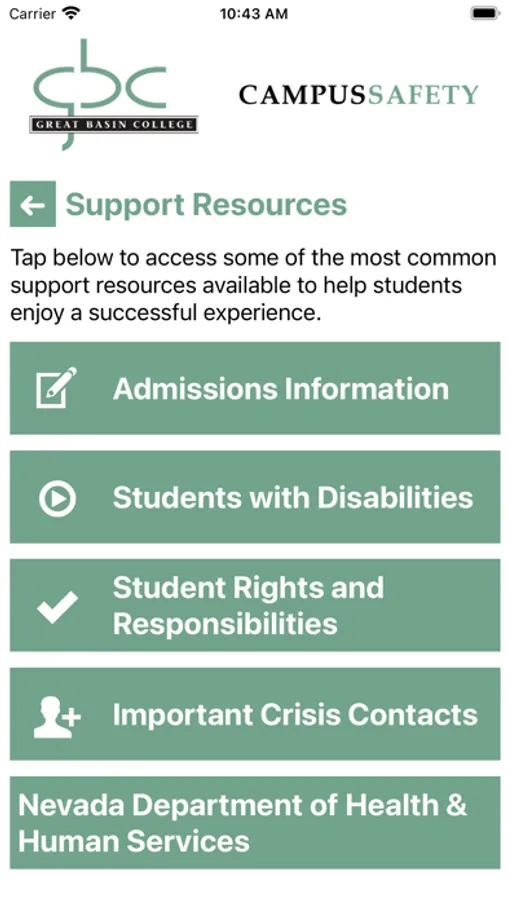 - Campus safety resources: access all important Great Basin College safety resources in one convenient app.