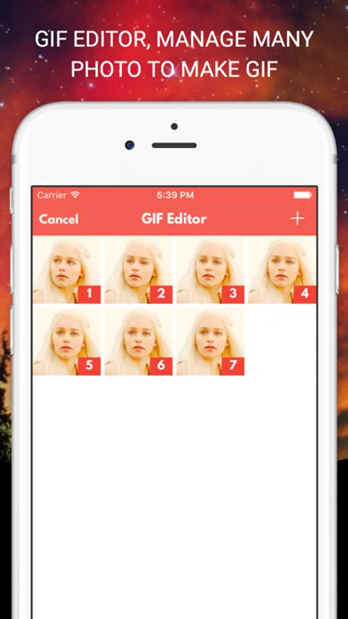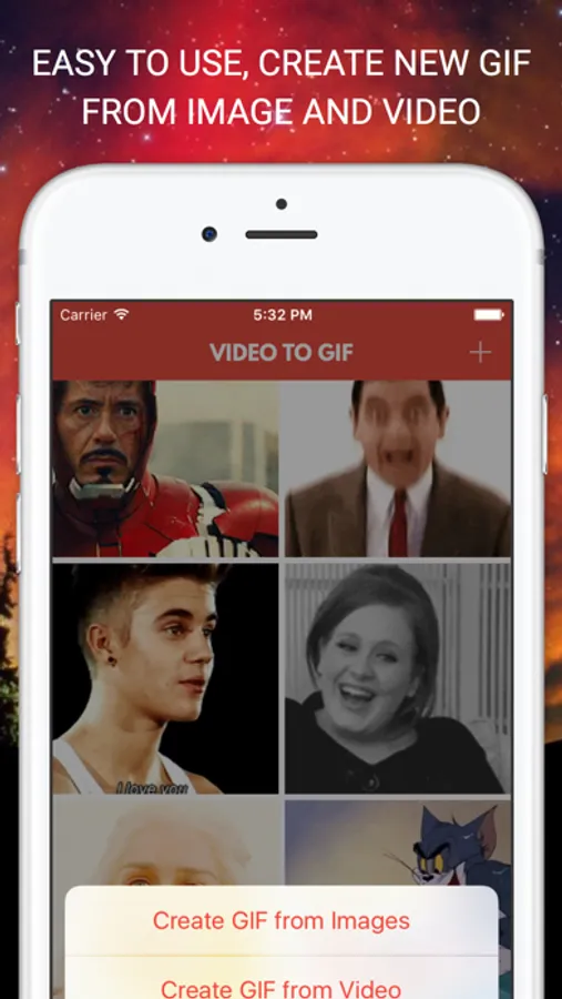 * Create GIFs from saved Photos and Videos or combine the existing GIFs into the new ones;