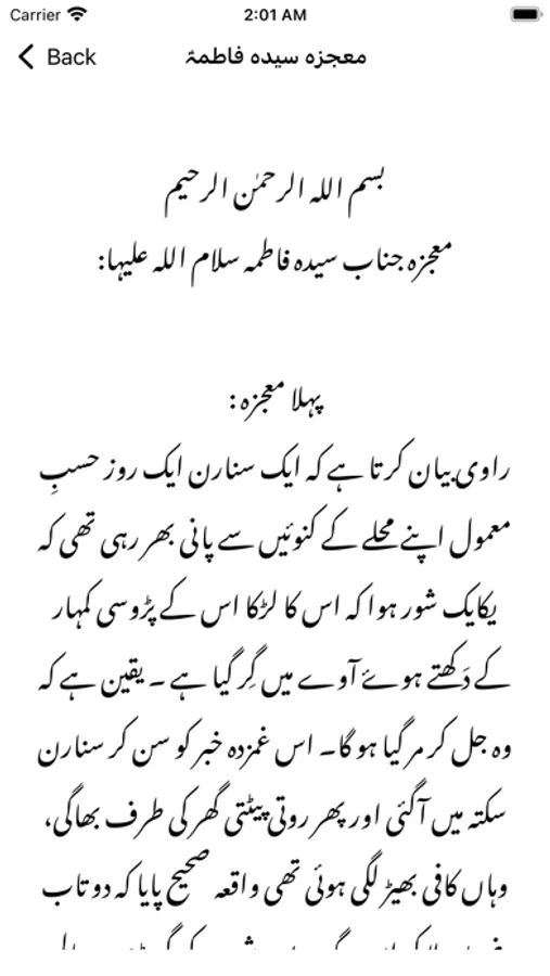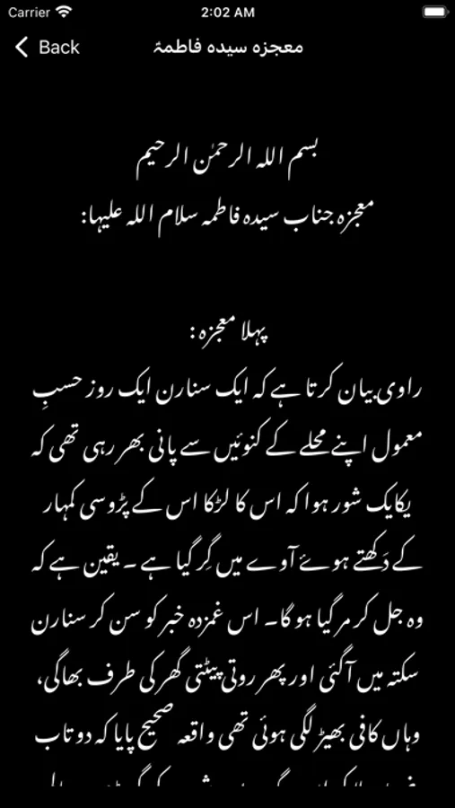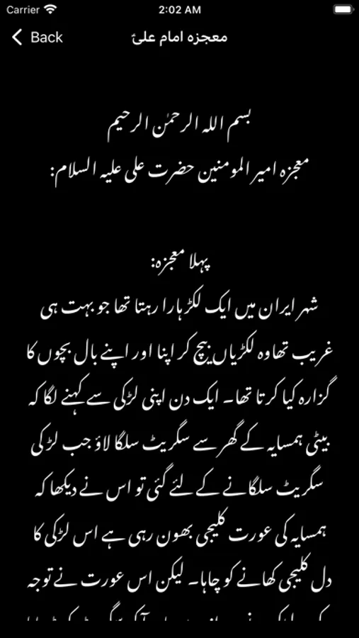 Unlike available materials of same kind of collection in book form, this app is an effort to include at least one miracle story of each of the Fourteen Masoomeen (چہاردہ معصومین علیہم صلٰوة والسلام). However, some of Ahl-e-bait (as) have more than one miracle stories in this app.