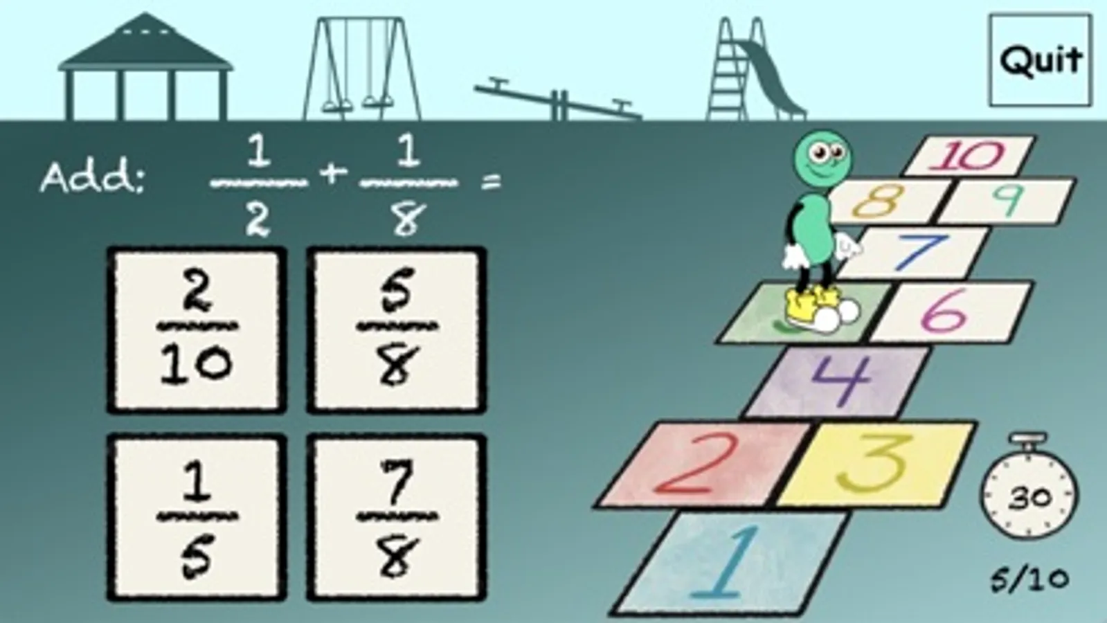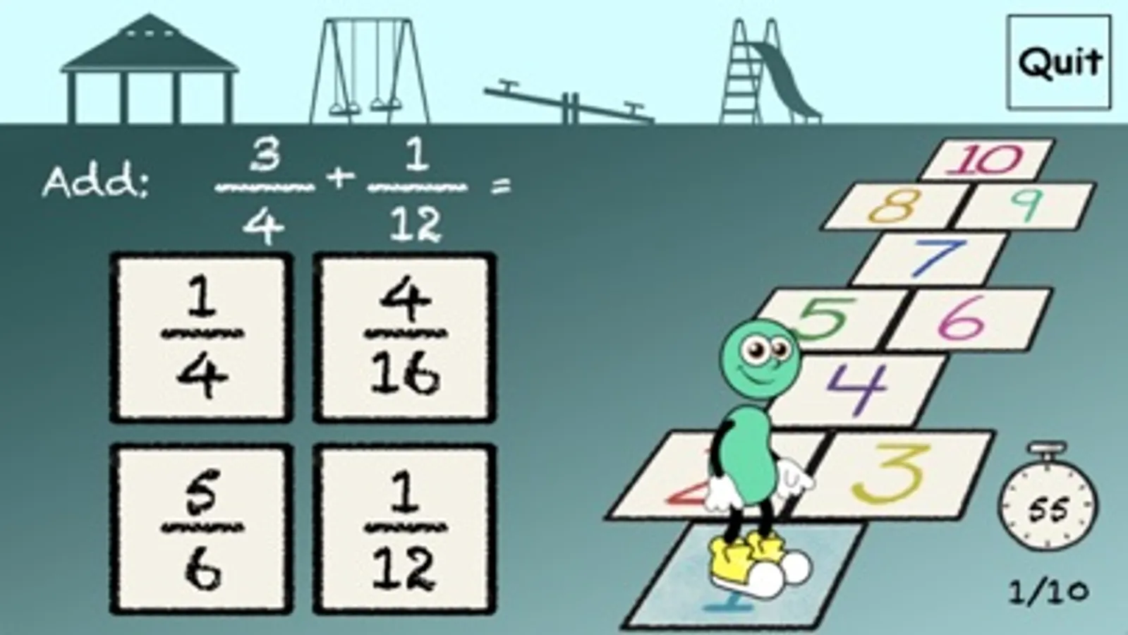 Show your ability to add fractions by playing hopscotch. Try all thirteen levels!