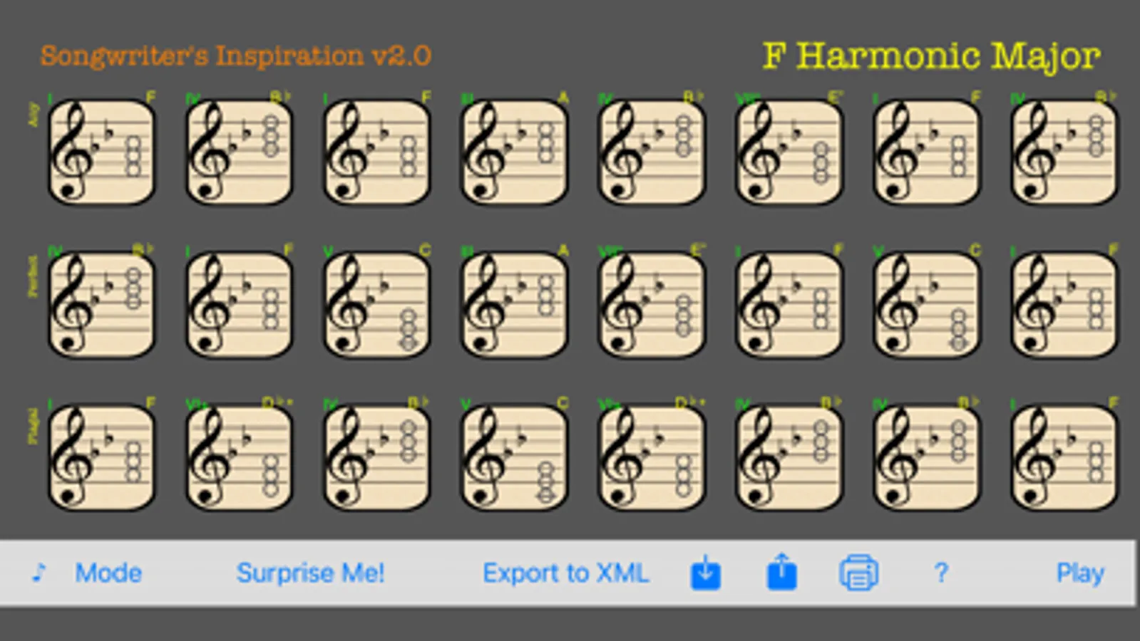 If you find a sequence that you like, you can store it for later recall. You also have the option to print the sequences on screen. You can also play each sequence with a piano sound, to get an idea of what it will sound like. Finally, you can export to Music XML format. This can be read by third party tools, and can prove quite a time saver if you use Logic Pro.