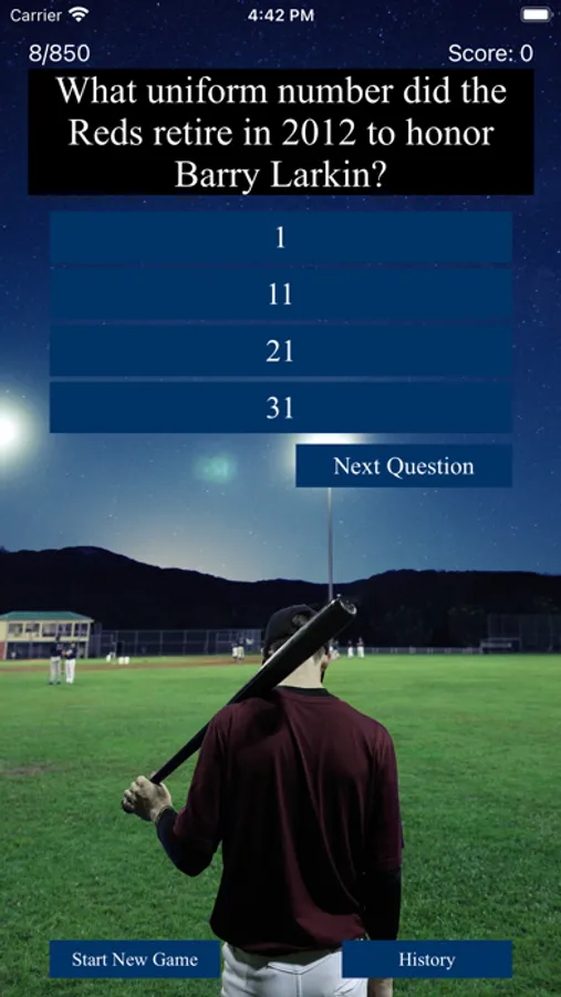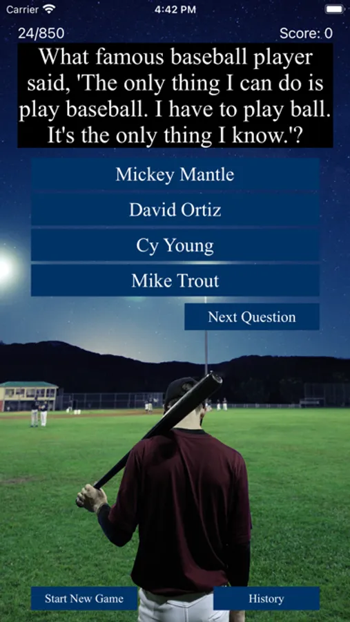 Test your knowledge on all things baseball. World Series winners, MVP awards, retired uniform numbers, Cy Young Award winners, and random baseball facts. 850 total questions.