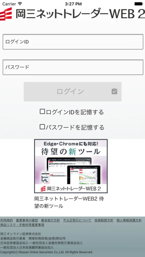 ・「岡三ネットトレーダーWEB2」をご利用いただくには、岡三オンラインに口座を開設していただく必要がございます。