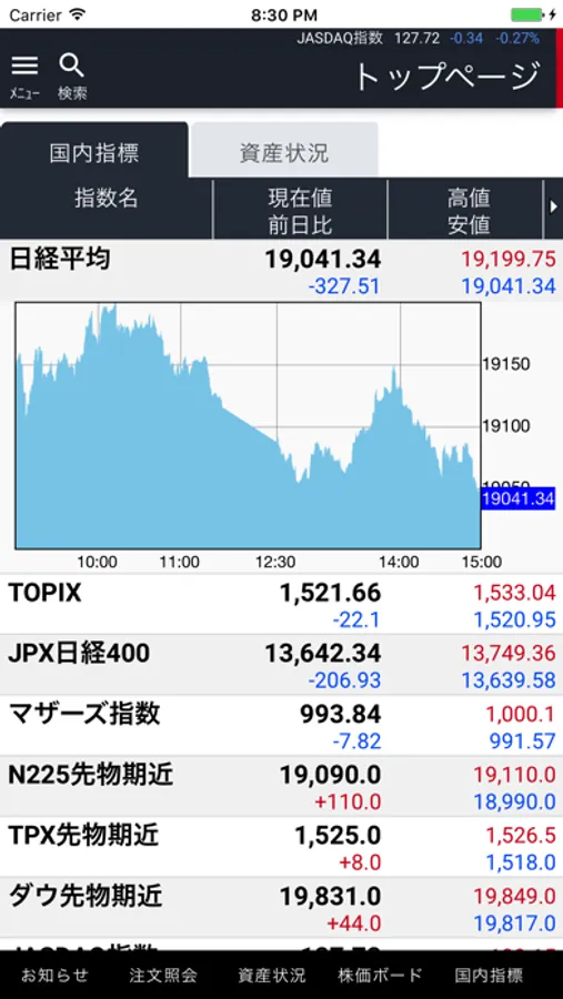 ・資産状況(現金、現物株式、信用建玉評価損益、投資信託の合計金額)
