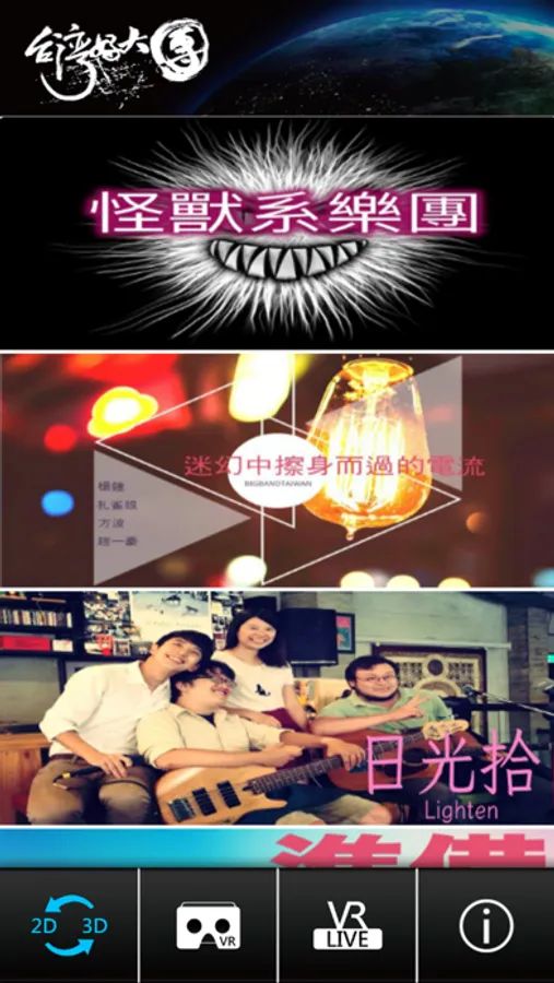 音樂無界,就在你眼前。 「台灣好大團」是公視成立的網路音樂節目,透過「台灣好大團360播放器」,你將能看到台灣與海外獨立樂團的演出。透過3D轉換並VR眼鏡,觀眾能身歷其境的看到樂團的表演,享受無界的音樂震撼。另外自2016年6月22日至11月2日期間,台灣好大團也許知名音樂展演空間PIPE LIVE MUSIC合作,於每週三舉辦Know Stage Sessions網路直播演唱會,只要下載「台灣好大團360播放器」,即可收到直播訊息,並立即在手機、平板看到當天的直播演出喔。 跟著公視一起用行動,支持台灣的好音樂吧!
