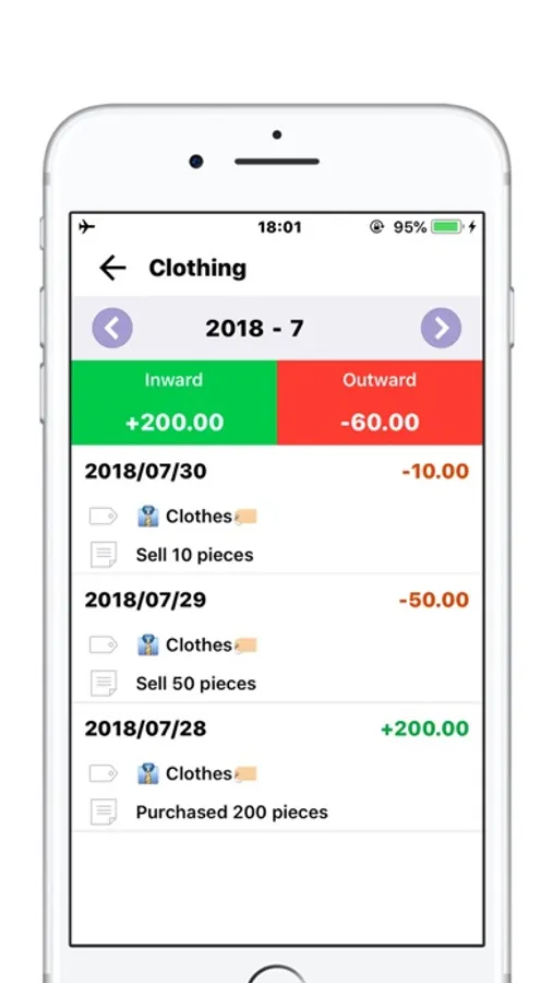 - Inward inventory by product