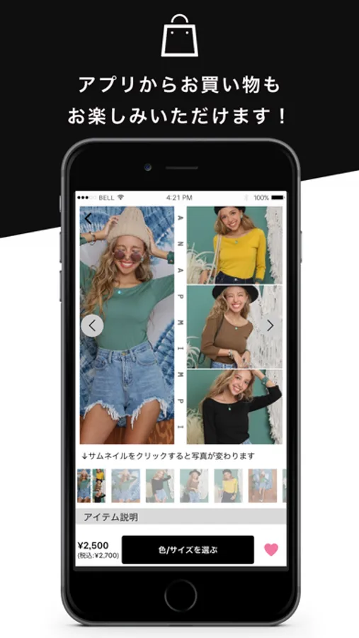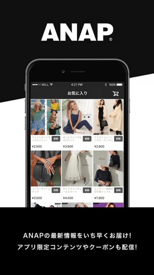 アプリ限定クーポン等のおトクな情報はもちろん、気になったアイテムはアプリでそのまま購入可能!また、トレンドの最旬コーデもアプリからチェックできます!ANAPの最新情報をアプリでいち早くチェックしよう!!