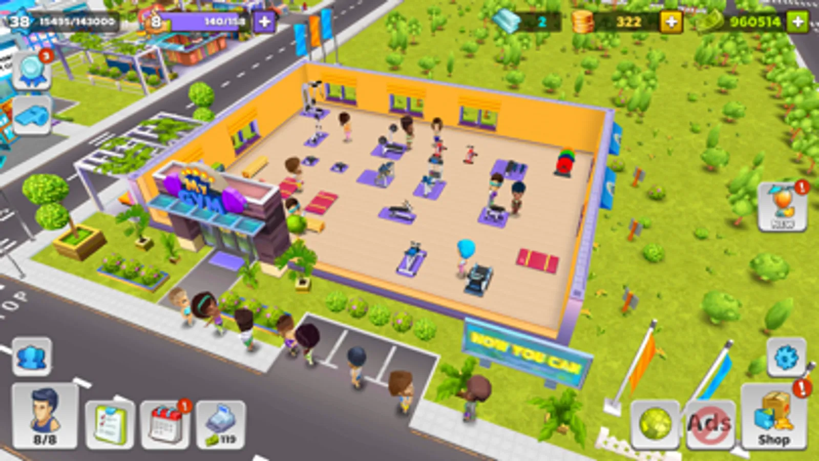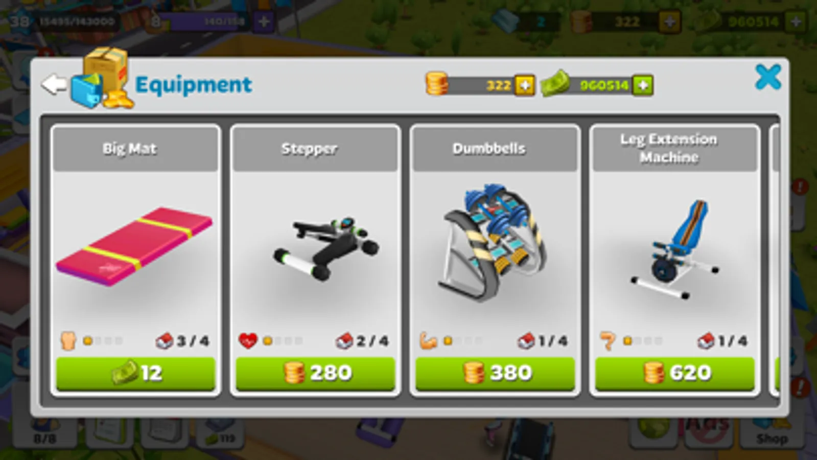- Level up to unlock new features and upgrades for your gym