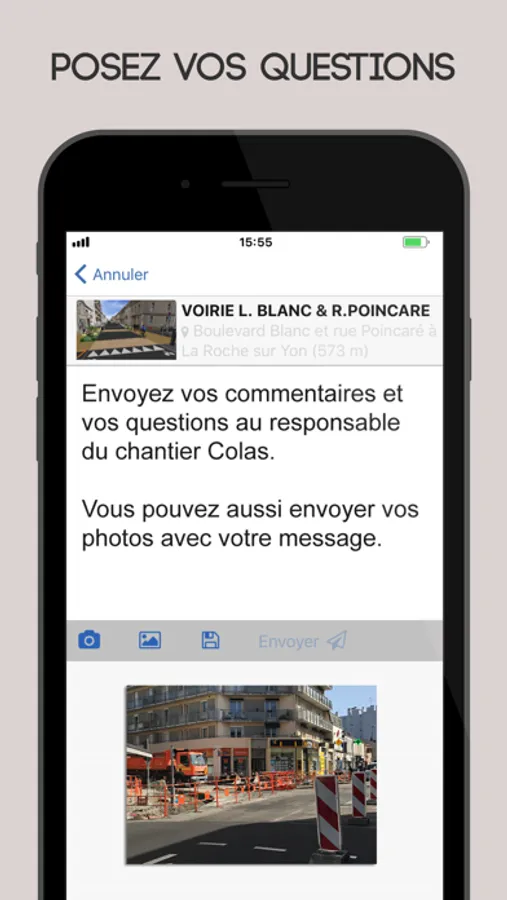 Profitez de l'application pour envoyer vos questions, vos messages ou vos remarques, ajoutez vos photos. Nous vous répondrons en direct, ou via l'application.