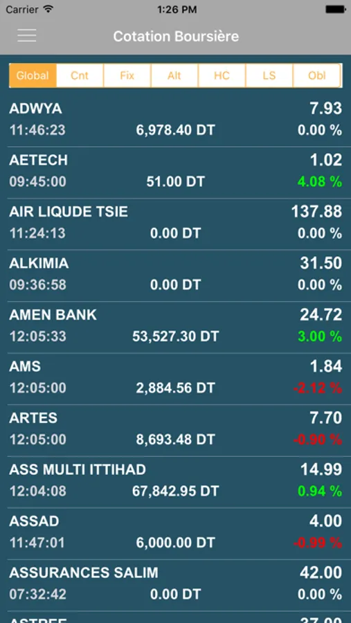 - La visualisation des indices et des cotations du marché de la bourse de Tunis.