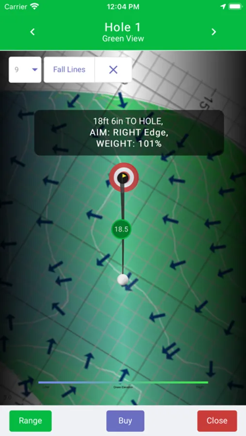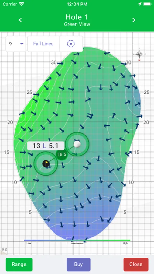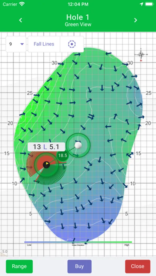 It displays an interactive topography map for each green we've scanned. You can zoom in and out to see the contours and slope percentages, adjust the grid, view a spinning 3D animation, and even calculate your exact putt line (StrackaLine) by setting the hole location and your ball location. Just like a video game, but the information is real!