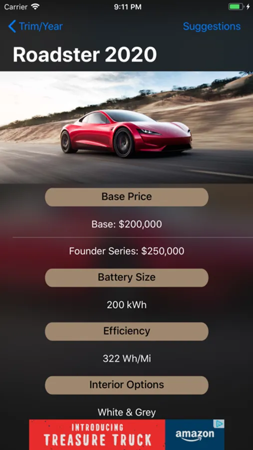An expanding collection of vehicle specifications, from 0 to 60 times, vehicle dimensions, available options, base and max price, and many more. More vehicles added constantly.