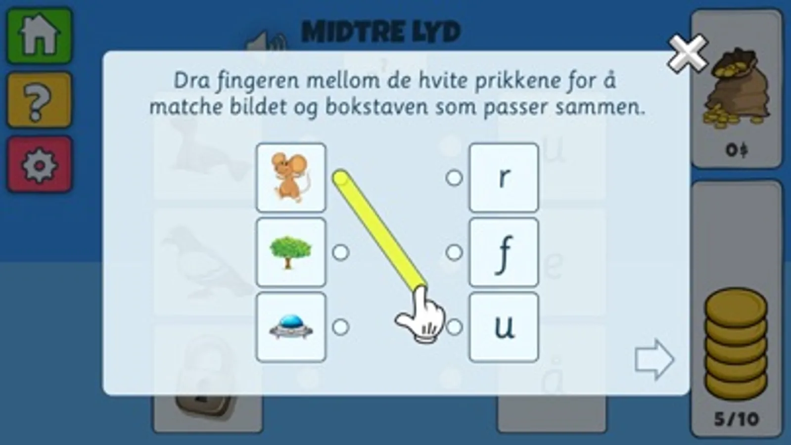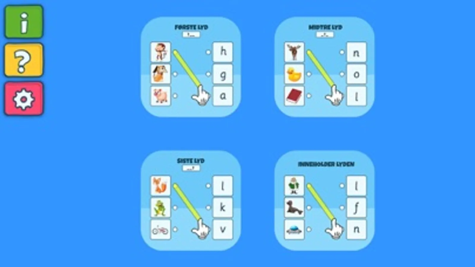 Match - Lyder er en app for barn i tidlig leseopplæring. I denne appen får barnet trening i å kjenne igjen bokstavlydene i ord. Med morsomme illustrasjoner og intuitivt grensesnitt er Match - Lyder en underholdende og lærerik app som er lett å bruke.