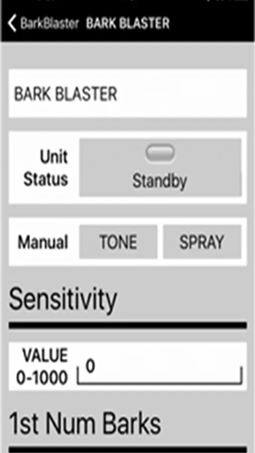 Once connected to the BarkBlaster, the App will allow the user to define how much barking will be allowed, how long the "Beep" will last and how long the water will spray. The user can continue to change these settings when within Bluetooth range of the BarkBlaster.