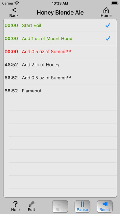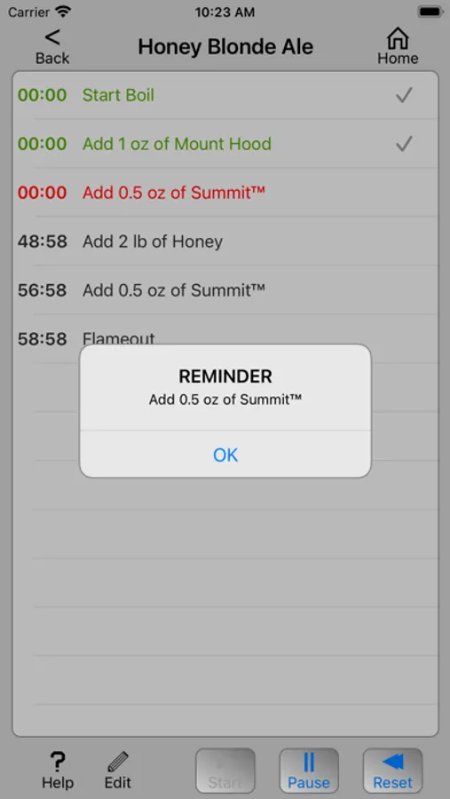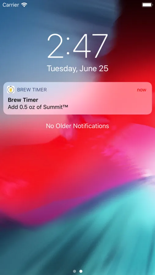 Once started, Homebrew Timer will show the time remaining to add each ingredient and will push a notification to your device's screen
