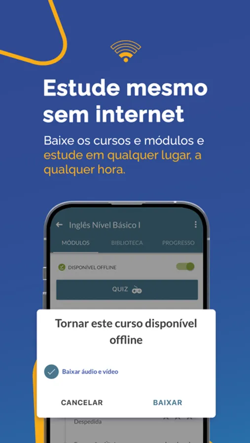> Aprenda mesmo sem internet: através do modo offline, você faz download do conteúdo e estuda mesmo sem uma rede wi-fi ou quando seu pacote de dados acabar.