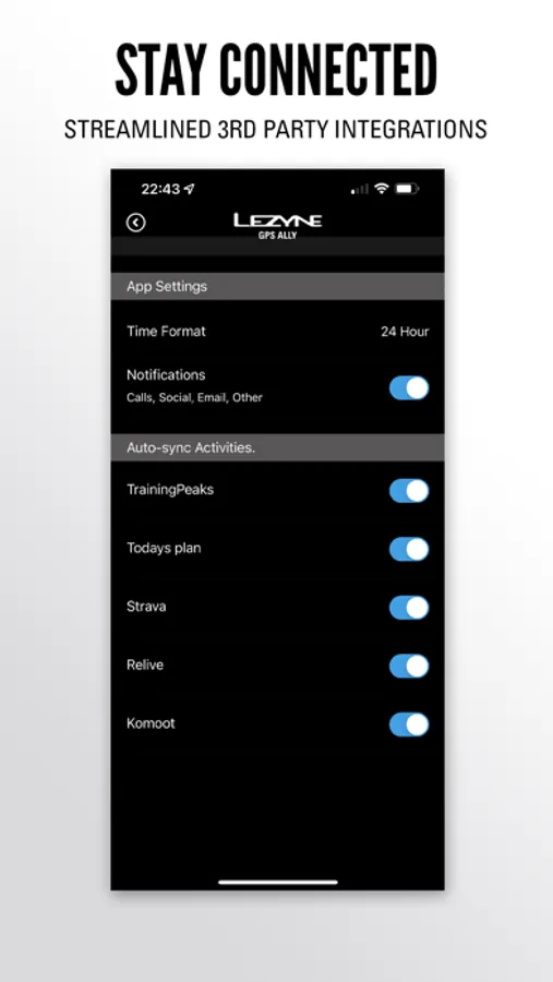 Part of our complete GPS ecosystem, the Lezyne Ally app is the key link between your phone and your Lezyne GPS device. The free app features the latest interactive and real-time technologies designed to enhance your cycling experience. Once paired to one of our GPS devices, you'll enjoy easy device customization, wireless ride syncing, route loading and mapping, and so much more. Experience effortless navigation, import .tcx and .gpx files, and connect cycling routes directly through the application. Additionally, the app is an easy-to-use resource to instantly save, store, and review rides from the palm of your hand. Activities can then be auto-synced to third party apps such as Strava, Komoot, Relive, TrainingPeaks, and more, as well as shared to popular social media outlets like Facebook and Twitter.