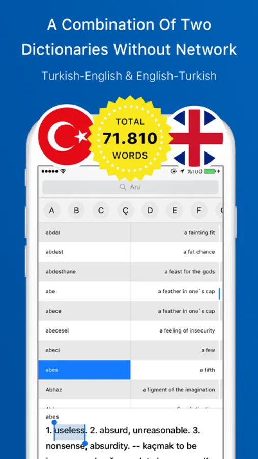 About English to Turkish and Turkish to English: Free A Combination Of Two Dictionaries Without Network