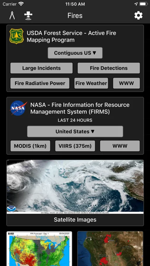 Fires provides extensive near real-time GOES (Geostationary Operational Environmental Satellite) imagery from NOAA.