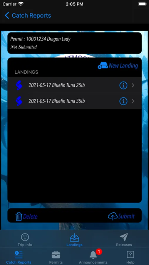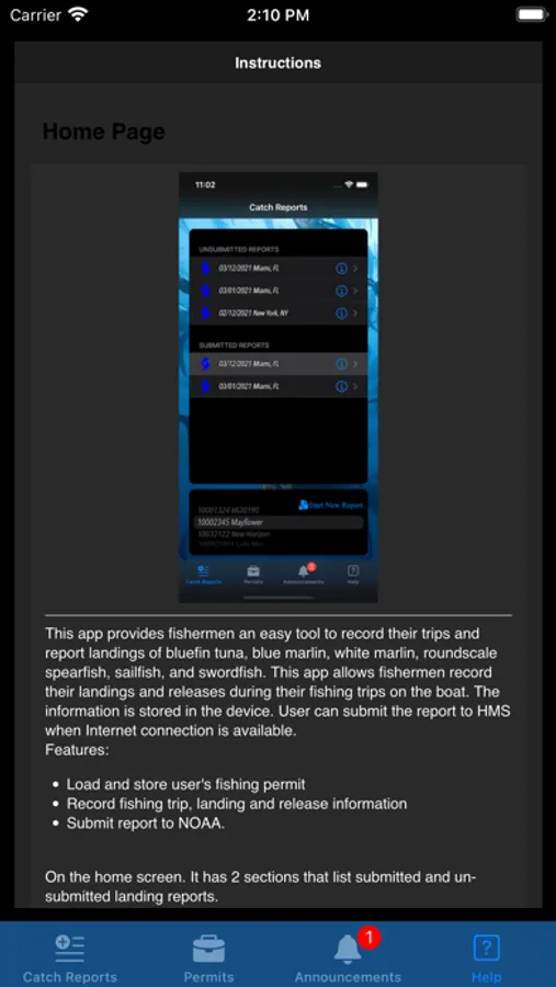 This app provides fishermen an easy accessible tool to record their trips and report catch of bluefin tuna, blue marlin, white marlin, roundscale spearfish, sailfish, and swordfish. This app allows fishermen record their HMS landings and releases during their fishing trips on the boat. The information is stored in the device. User can submit the report to HMS when Internet connection is available.