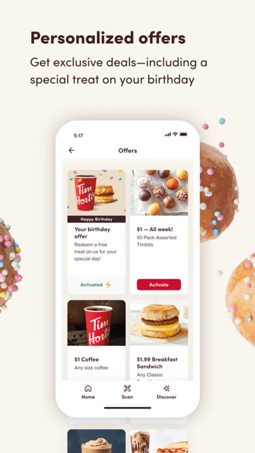 Take advantage of exclusive deals inspired by your recent orders. Simply activate the offers that interest you and order the menu items before time runs out!
