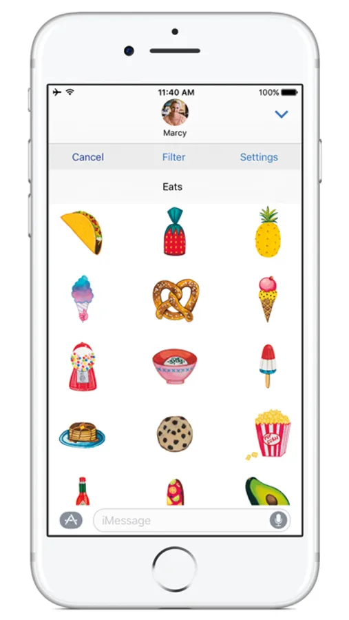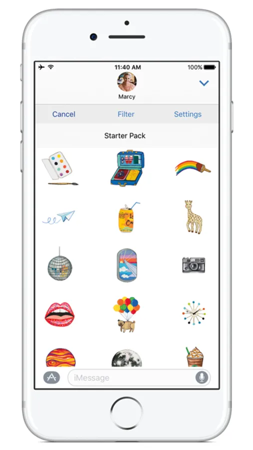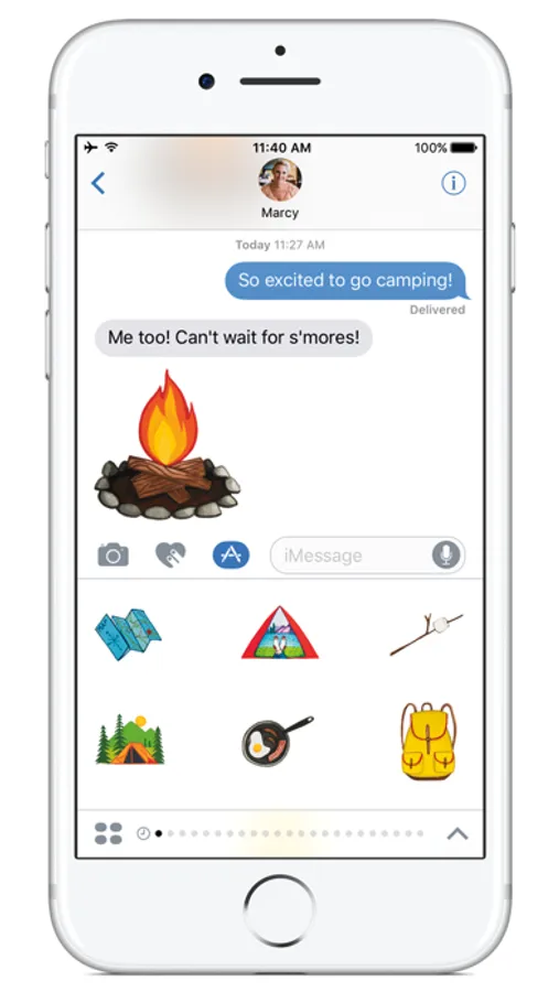 • To use a sticker within a conversation, you simply tap to send or you can touch and hold to place them on top of bubbles, other Stickers, or even photos. It feels just like peeling and pasting a traditional sticker.