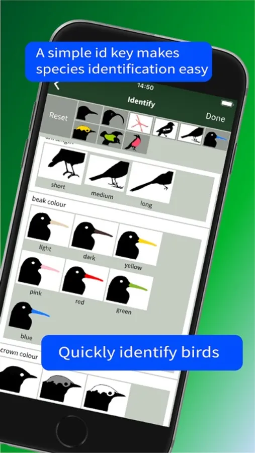 Narrow species down by foot colour, bill shape, tail length etc. leading to the bird searched for plus a choice of similar species. You can also look for fragments of a species name – the search for “finch“ shows all the species which include the word “finch“ in the species’ name.