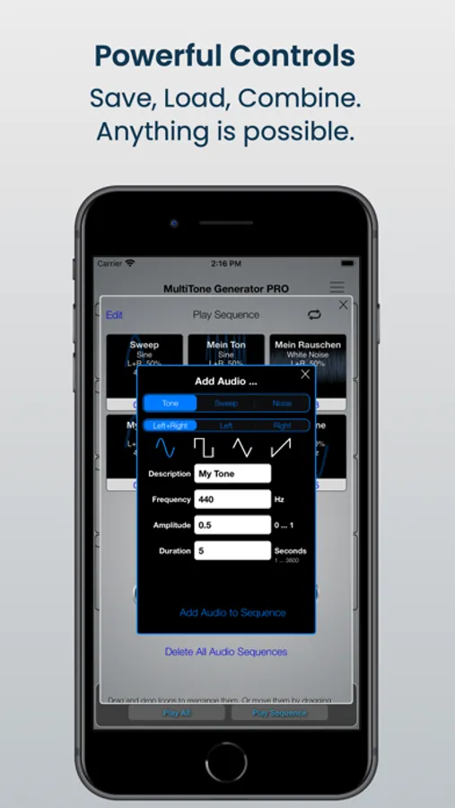 CREATE up to 16 tone combinations. Play them individually or combined.