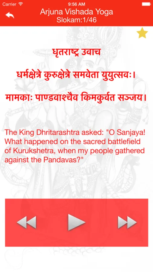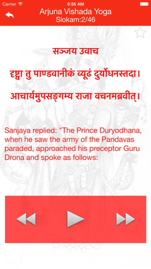 * The application contains beautiful translation of Bhagavad Gita from Sanskrit to Hindi language.