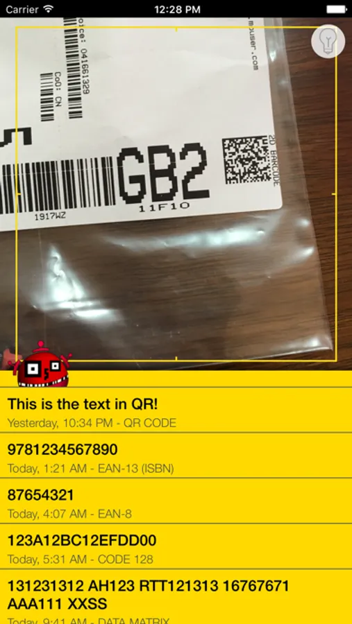 Robot QR uses the iOS native barcode recognizers and can read more than 13 types of the most popular commercial barcodes: